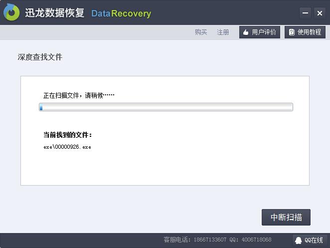 迅龍數據恢復軟件采用了最新的深度掃描技術,能對設備進行深層次掃描,有效找回丟失的數據,達到完美的數據恢復效果。只要丟失數據沒有被覆蓋,迅龍數據恢復軟件就能百分百找回丟失的數據。