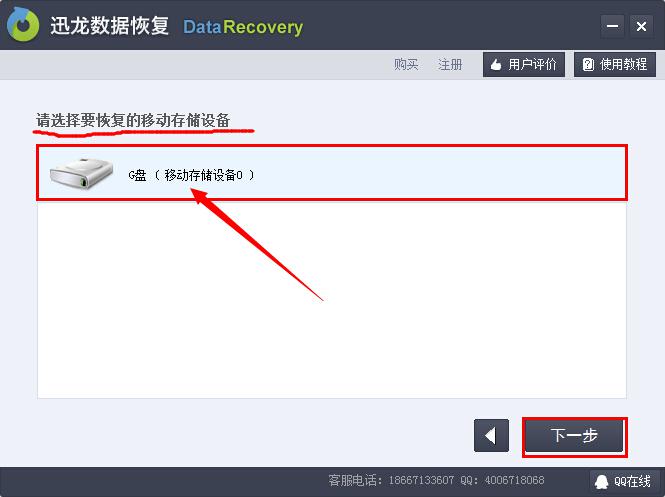 步驟四:選擇你要恢復的移動存儲設備,然後點擊下一步。?