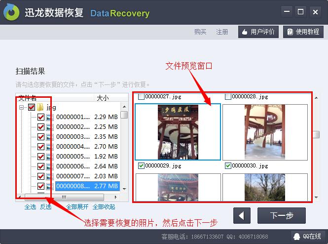 步驟六:掃描結果出來後,勾選你需要恢復的照片,勾選好文件後點擊下一步。???