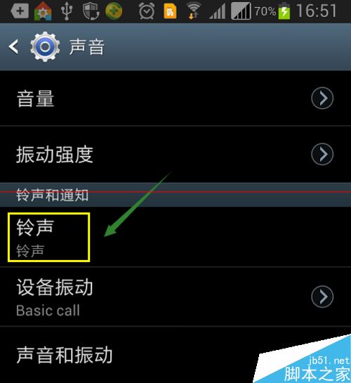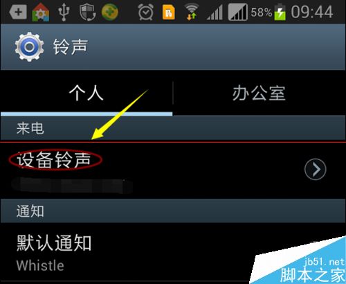 5、然後我們找到其中要靜音設置的那張卡,接著點擊"設備鈴聲",在鈴聲裡選擇靜音,一般來說每部手機都有靜音選項,而且幾乎都在最上面,如圖;設置振動就簡單了,我們只需在鈴聲和通知下,將"聲音和振動"後面打勾選中即可