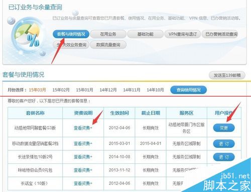 5、如果想要看自己的套餐及使用情況也可以查詢,可查看資費,也可以變更或退訂。