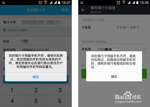 1、如下圖所示:比如我QQ和微信上要添加銀行卡開通快捷支付時,想要將原來預留在農行的136手機號,修改為170的手機號為例。給大家做一次演示在農行網銀修改預留手機號的步驟。