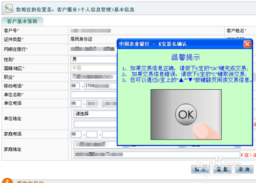 PS:農行網銀修改手機號只限於在櫃台注冊網銀的用戶,自注冊查詢版的是不支持的。