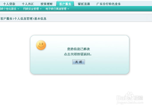 9、好啦!看到 “您的信息已修改” 後 ,點擊關閉即可。這樣預留手機號就算是修改成功了。