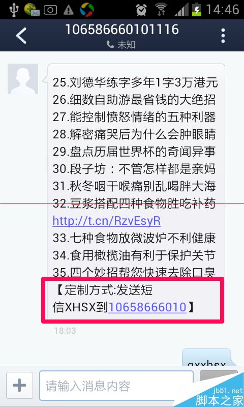 4、一氣之下我想退訂該信息。可是由於對方根本沒有告訴你退訂方法,所以我從網上查了一下,原來需要發送"qxxhsx"到10658666010