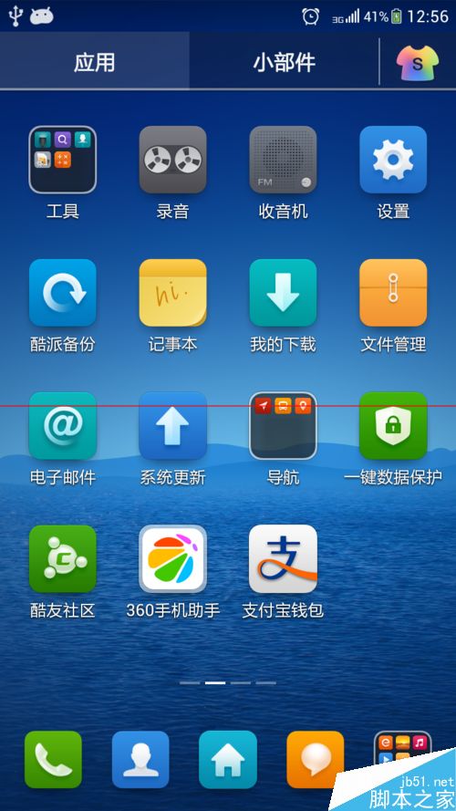 1、在我們的手機程序集合界面找到,彩色衣服的標示,就是酷秀的應用。點擊進去。
