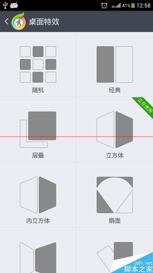 7、我們就可以在手機界面,使用我們選擇的特效了,就是我們平常所說的立體滑動效果了。