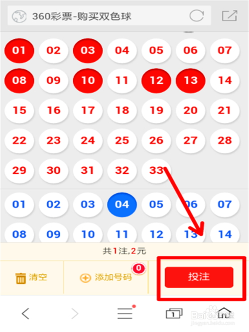 5、小編在這用的是機選,號碼選好了,點投注,