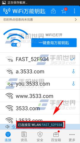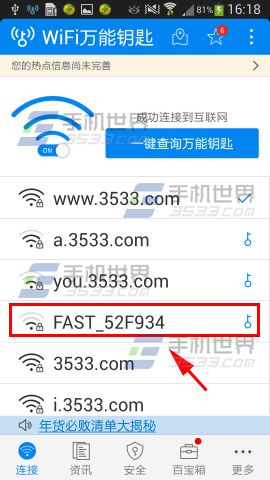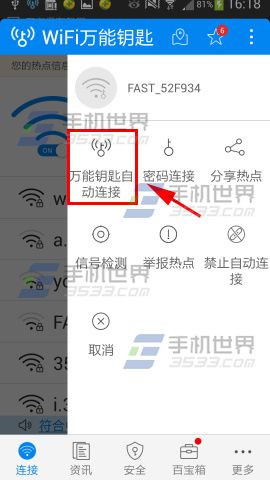 2)出現有【鑰匙】圖標的才能連接哦!點擊想要連接的【WIFI】點擊【萬能鑰匙自動連接】。(如下圖)