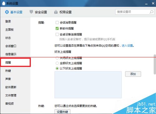 3、再點擊左側欄從登錄設置切換到“提醒”設置;