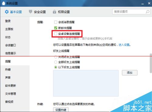 4、右側提醒下可見“安卓設備連接提醒”設置,取消對其勾選,自動保存。再插入安卓設備時,就不會彈出煩人的安裝或更新提示了;