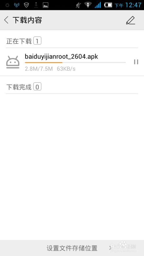 1、在浏覽器搜索百度一鍵root,普通下載。等待下載完成