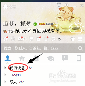 1、確保你的手機和電腦在同一個WiFi的環境下,打開你的QQ,點擊我的設備。