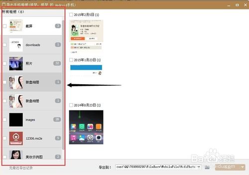 3、在彈出的框框中找到“導出手機相冊”並且點擊。