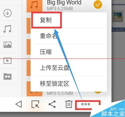 5、然後再點擊如圖位置,在彈出的的菜單選擇“復制”,不得不說的,這裡只有復制的功能,沒有剪切的功能。