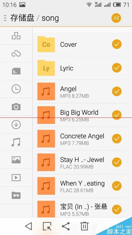 4、這個時候我們將原有文件夾中的音樂全部選擇。這個也是有技巧的哦,我們點擊右上角“ALL”,就可以了。