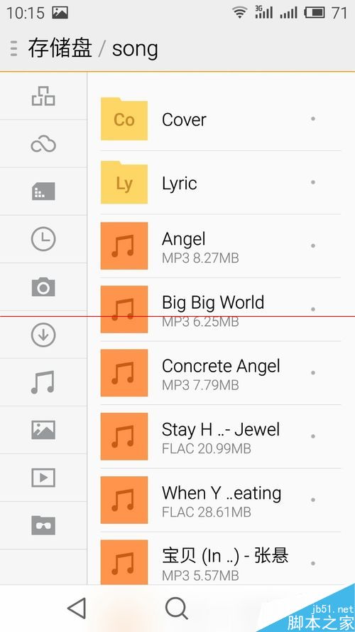 1、如圖所示:我們可以看到手機的存儲盤中有歌曲。