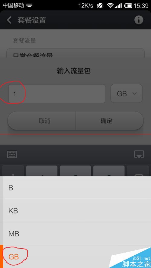 5、在此界面。點擊增加流量包選項,可以選擇B/KB/MB/G的流量包,在這裡,筆者選擇1G,得到如下圖所示界面
