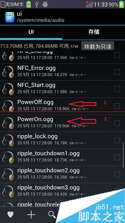 6、再次進入ui文件夾,就可以看到PowerOff.ogg和PowerOn.ogg兩個鈴聲不見了,移出成功,重啟手機,發現開機和關機鈴聲沒有了。
