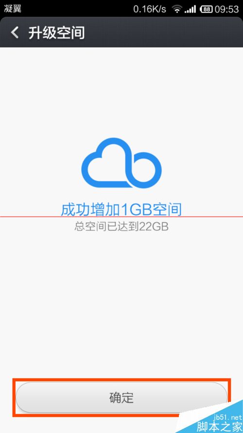 6、在“升級空間”頁面,點擊“確定”。至此升級成功。