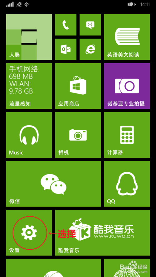 1、打開wp系統的開始界面,選擇設置