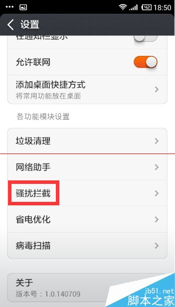 3、之後,點擊 騷擾攔截 圖標按鈕