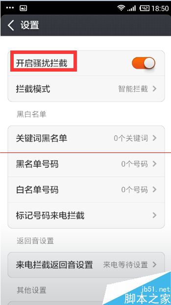 7、進入 騷擾攔截 設置界面,即可設置對應的攔截規則。