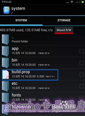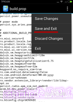5、找到“build.prop”文件,長按不丟,出現彈出菜單--選擇“在文本編輯器中打開”(“Open in Text Editor”)