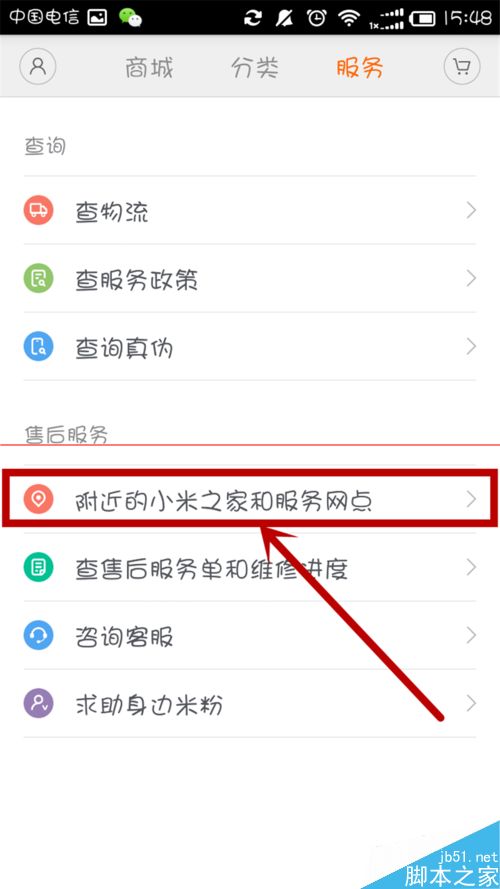 2、選擇售後服務的第一項“附近的小米之家和服務網點”,然後點擊打開!