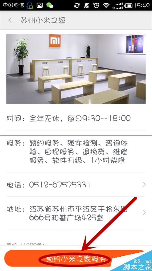 4、點擊進入蘇州小米之家售後首頁,然後點擊下方橙色按鈕“預約小米之家服務”