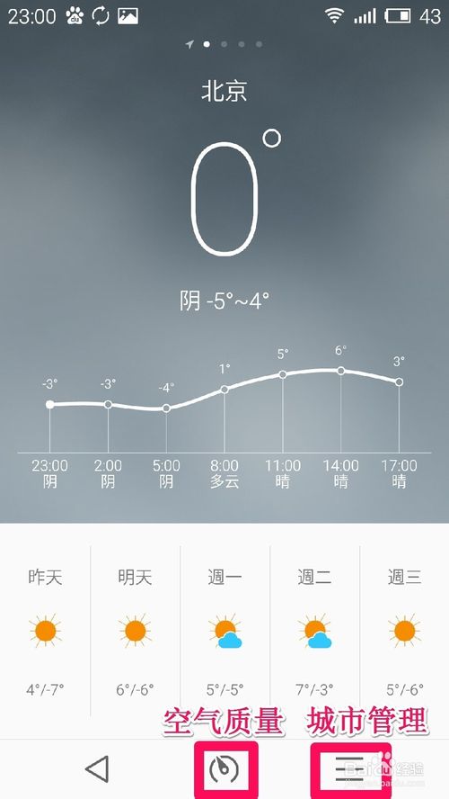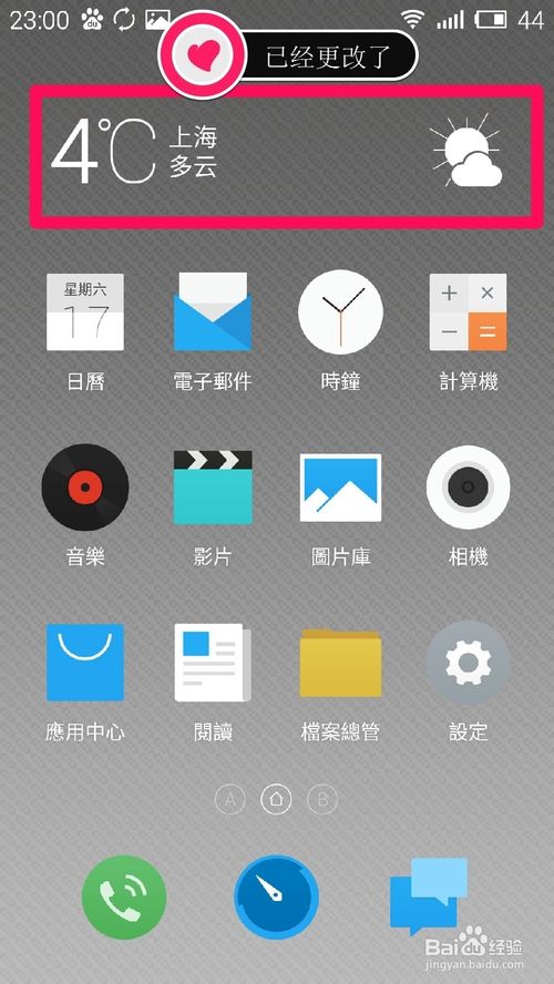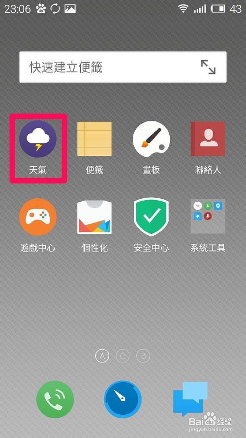 1、魅藍NOTE天氣程序(在有網絡時更改或更新),系統有保存幾個地區,進入系統桌面,點擊,如圖(天氣就可以更換保存了的幾個地區的天氣了)。
