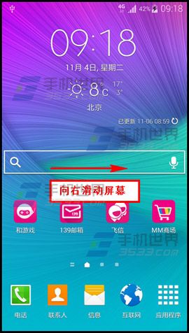 三星note4簡報開啟方法:在待機頁面,向右滑動屏幕至簡報界面,按提示將簡報開啟即可。(如下圖)