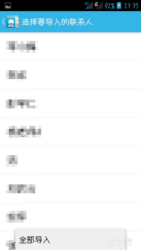 3、選擇單個要導入的聯系人信息。或者點擊設置鍵全部導入,之後就可以在手機聯系人裡看到你導入的聯系人信息了。