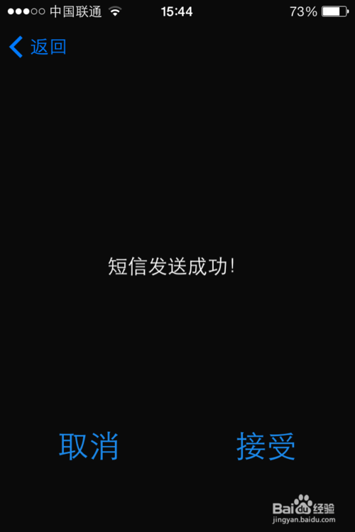 5、點擊接受短信後,會出現如下提示,到此,iPhone4碰到的“sim卡發送了一條文本信息”就會終止