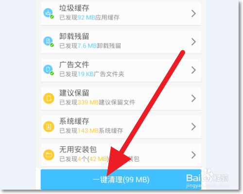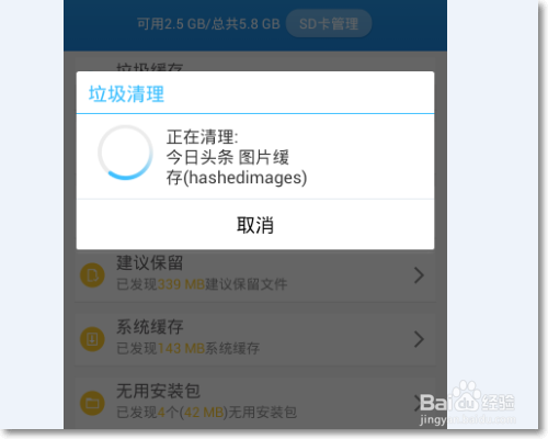 2、首先清理一下手機的垃圾緩存,用你常用的軟件就行