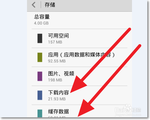 5、然後去到 手機 --- 設置 ----- 存儲,我把緩存和下載的內容都刪除了,節省空間。
