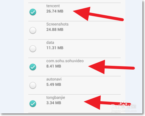 7、例如這些我知道的應用緩存都進行刪除了,可以根據自己的實情進行刪除,但千百萬不要刪除手機的系統文件。