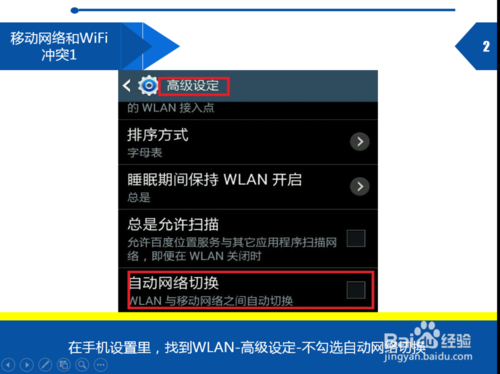 在手機設置裡,找到WLAN-高級設定-不勾選自動網絡切換