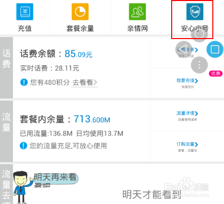 2、安裝完成後打開軟件,在下圖中找到“安心小號”按鈕並單擊進入