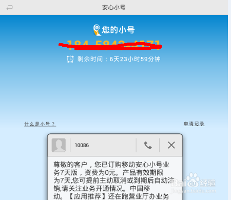4、申請成功後就可以用這個新的小號打電話發短信等等了。