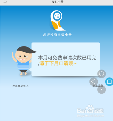 3、進入之後通過單擊申請按鈕可以申請一個臨時的安心小號,由於本人已經申請過一次所以不能再次申請了