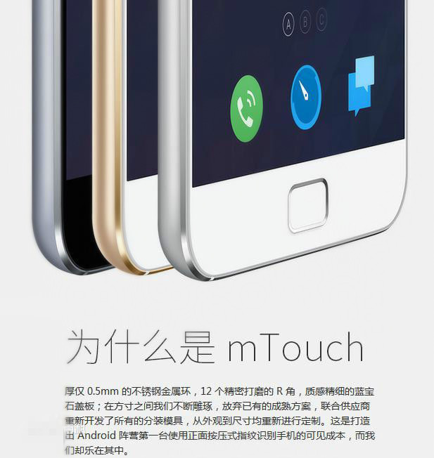 作為全球首款正面按壓式指紋識別的Android手機,魅族圍繞指紋識別打造了“mTouch”系統,手指只需輕輕按下Home鍵,藍寶石下的傳感器會迅速響應,整個過程僅為0.5秒。通過傳輸加密、提取特征及存儲加密三大技術,結合多重加密算法,看來,安全隱患的問題不需要擔心了。