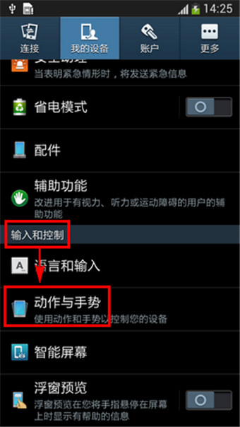 向上滑動屏幕,點擊【輸入和控制】中的【動作與手勢】。