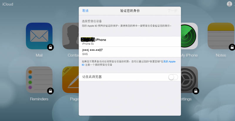 第二步,確認是本人操作,直接忽略郵件在網頁端繼續操作,選擇使用授信設備或者短信,接收動態驗證碼。