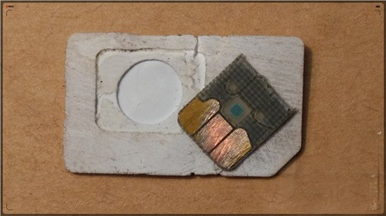 這中卡比較特殊,他屬於RF-UIM卡。大家也發現右面有也有一塊銅質材料的屏蔽層(或者天線)。這種卡有其他作用。