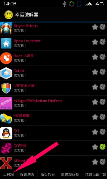 第1步: 打開幸運破解器,按左下角的工具箱 - Android 核心破解;