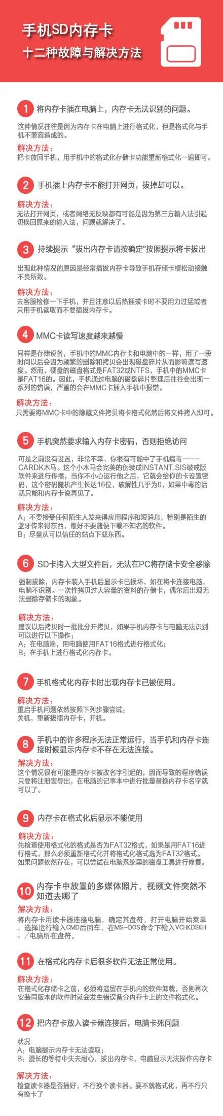 【問題一】:將內存卡插在電腦上,內存卡無法識別的問題。這種情況往往是因為內存卡在電腦上進行格式化,但是格式化與手機不兼容造成的。解決方法:把卡放回手機,用手機中的格式化存儲卡功能重新格式化一遍即可。