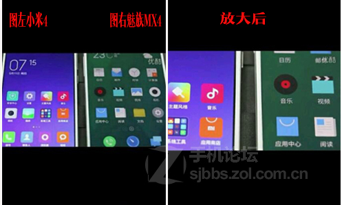 先來看看小米4和魅族MX4的邊框對比,就會發現問題在哪了。圖左是小米4,圖右是MX4