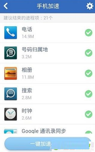 如果你認為手動關閉麻煩,還可以安裝第三方工具實現一鍵清理,比如騰訊手機管家、百度衛士等。啟動相應第三方工具,就能看到“手機加速”功能,點擊加速,軟件會自動將不用的程序關閉,釋放更多的內存。