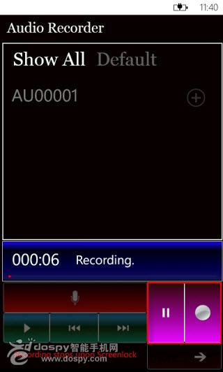 首先將附件中的AudioRecorder 1.0安裝到手機上,運行後點擊麥克風按鈕即可錄制音頻。錄制過程中可以按紅框處的‖按鈕暫停或是●按鈕結束錄制,錄制好的音頻格式為wav文件。